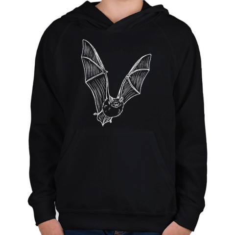 1 kép PRINTFASHION Repülő denevér - fehér - Gyerek kapucnis pulóver - Fekete
