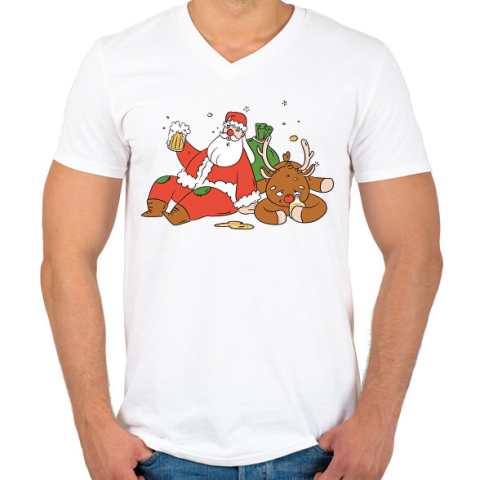1 kép PRINTFASHION Részeg télapó - Férfi V-nyakú póló - Fehér