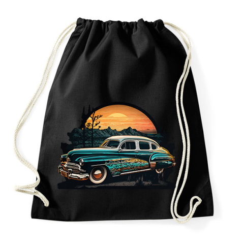 1 kép PRINTFASHION Retro autó naplementénél - Sportzsák, Tornazsák - Fekete