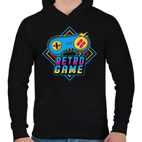 1 kép PRINTFASHION Retro játékos - Férfi kapucnis pulóver - Fekete