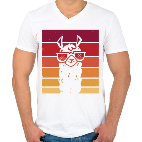 1 kép PRINTFASHION Retro láma - Férfi V-nyakú póló - Fehér