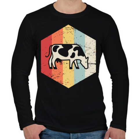 1 kép PRINTFASHION Retro szarvasmarha - Férfi hosszú ujjú póló - Fekete