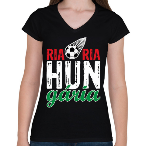 1 kép PRINTFASHION Ria ria hungária - Női V-nyakú póló - Fekete