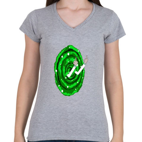 1 kép PRINTFASHION RickFck - Női V-nyakú póló - Sport szürke