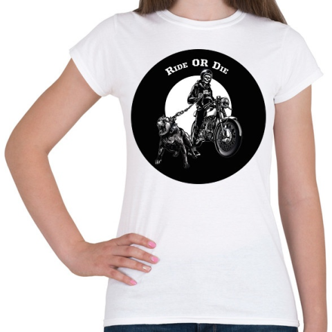 1 kép PRINTFASHION Ride or die - Motoros minta - Női póló - Fehér