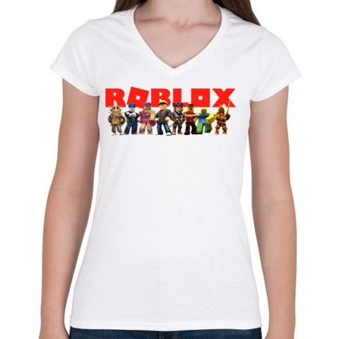 1 kép PRINTFASHION Roblox - Női V-nyakú póló - Fehér