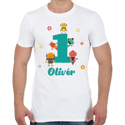 1 kép PRINTFASHION Robotos szülinap - Névvel - Férfi póló - Fehér