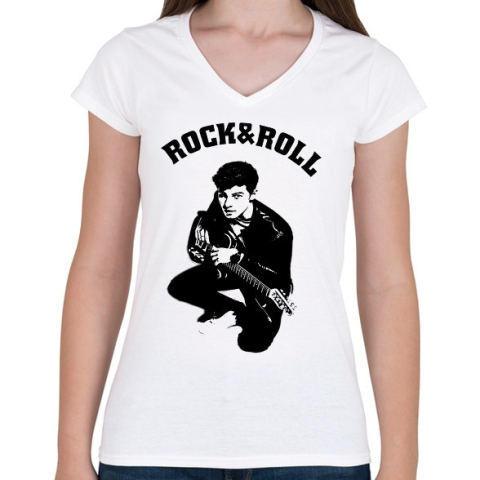 1 kép PRINTFASHION rock and roll4 - Női V-nyakú póló - Fehér