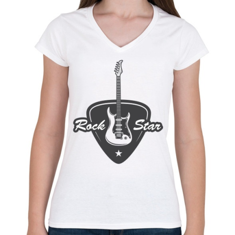1 kép PRINTFASHION rock gitár - Női V-nyakú póló - Fehér