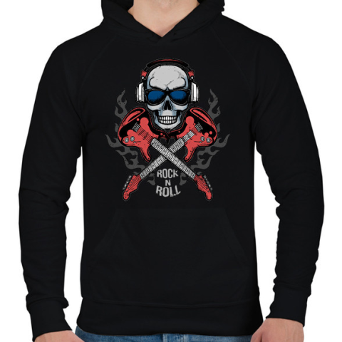 1 kép PRINTFASHION rock n' roll - Férfi kapucnis pulóver - Fekete