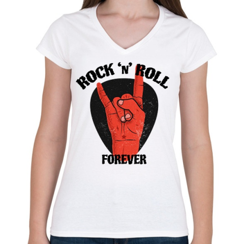 1 kép PRINTFASHION Rock 'n' Roll forever - Női V-nyakú póló - Fehér
