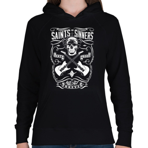 1 kép PRINTFASHION rock n roll - Női kapucnis pulóver - Fekete