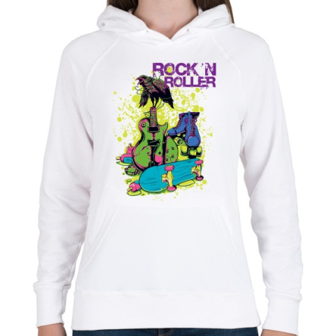 1 kép PRINTFASHION rock 'n roller - Női kapucnis pulóver - Fehér
