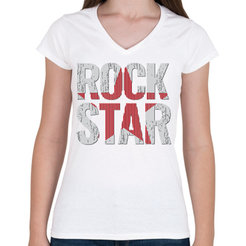 1 kép PRINTFASHION ROCK star - Női V-nyakú póló - Fehér