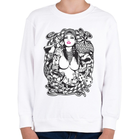 1 kép PRINTFASHION Rocker fantasy tattoo art - Gyerek pulóver - Fehér