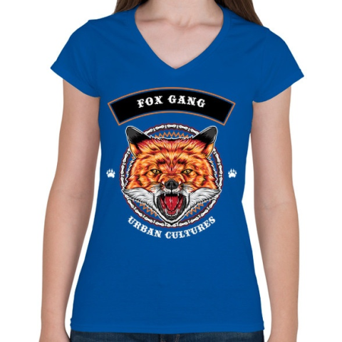 1 kép PRINTFASHION Róka banda - Női V-nyakú póló - Királykék