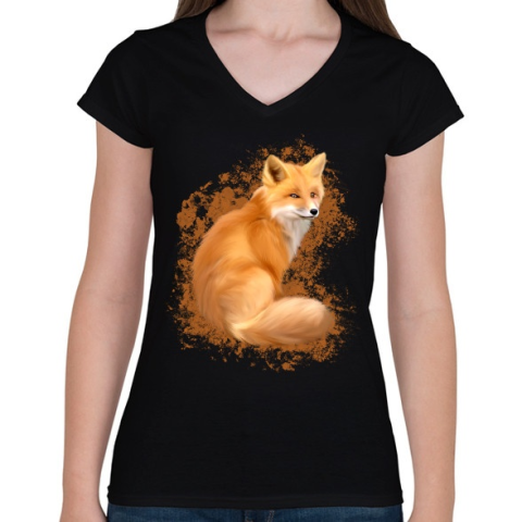 1 kép PRINTFASHION Róka - Női V-nyakú póló - Fekete