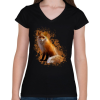 1 kép PRINTFASHION Róka - Női V-nyakú póló - Fekete