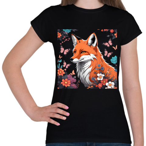 1 kép PRINTFASHION róka pillangókkal és virágokkal - Női póló - Fekete