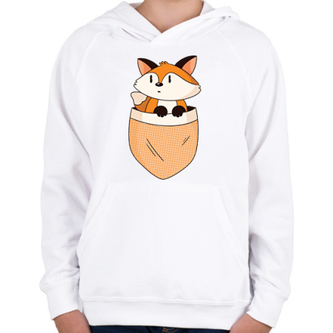 1 kép PRINTFASHION Róka zsebminta - Gyerek kapucnis pulóver - Fehér