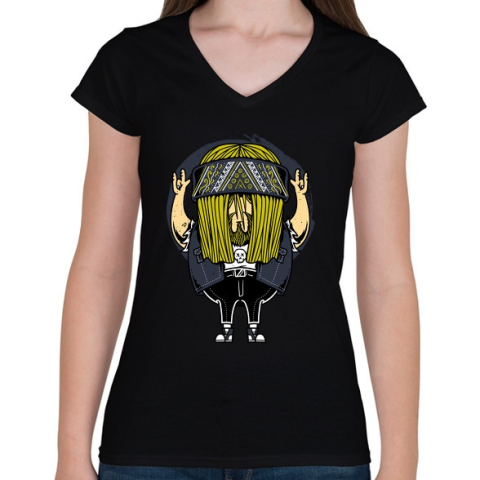 1 kép PRINTFASHION Rokker - Női V-nyakú póló - Fekete