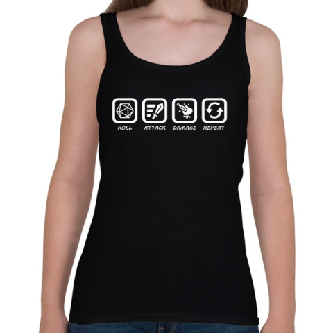 1 kép PRINTFASHION Roll, Attack, Damage, Repeat - Női atléta - Fekete