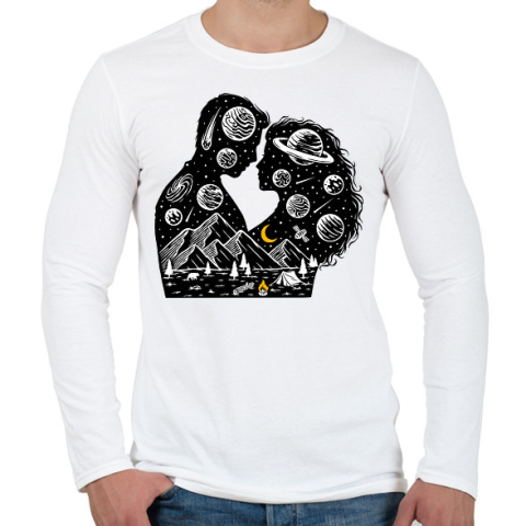 1 kép PRINTFASHION Romantikus univerzum - Férfi hosszú ujjú póló - Fehér