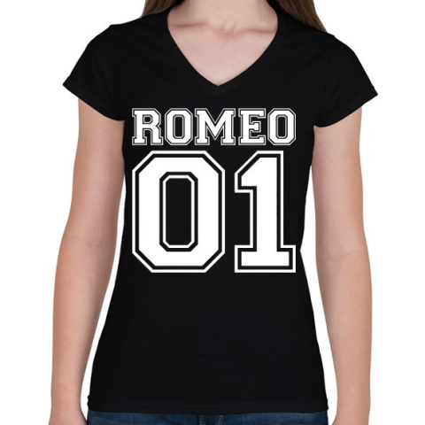 1 kép PRINTFASHION Romeo 01 - Női V-nyakú póló - Fekete