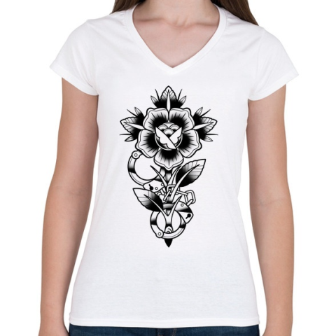 1 kép PRINTFASHION Rose-01 - Női V-nyakú póló - Fehér