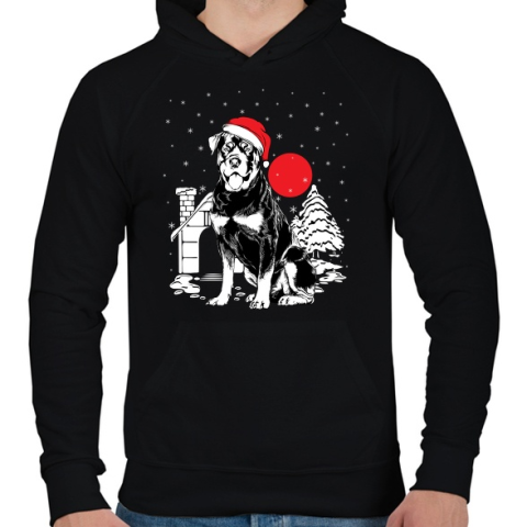 1 kép PRINTFASHION Rottweiler Karácsony - Férfi kapucnis pulóver - Fekete
