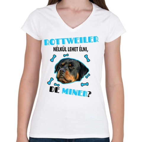 1 kép PRINTFASHION Rottweiler nélkül lehet élni, de minek? - Női V-nyakú póló - Fehér