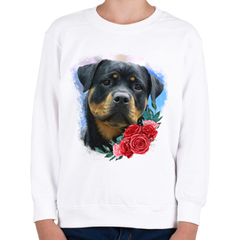 1 kép PRINTFASHION Rottweiler virággal - Gyerek pulóver - Fehér