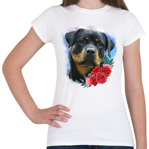 1 kép PRINTFASHION Rottweiler virággal - Női póló - Fehér