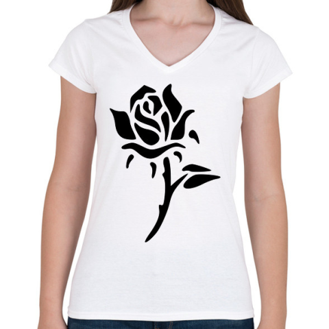 1 kép PRINTFASHION Rózsa - fekete - Női V-nyakú póló - Fehér