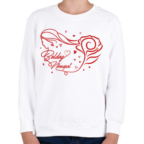 1 kép PRINTFASHION Rózsás nőnap - Gyerek pulóver - Fehér