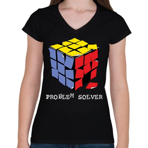 1 kép PRINTFASHION Rubik kocka egyszerűen - Női V-nyakú póló - Fekete