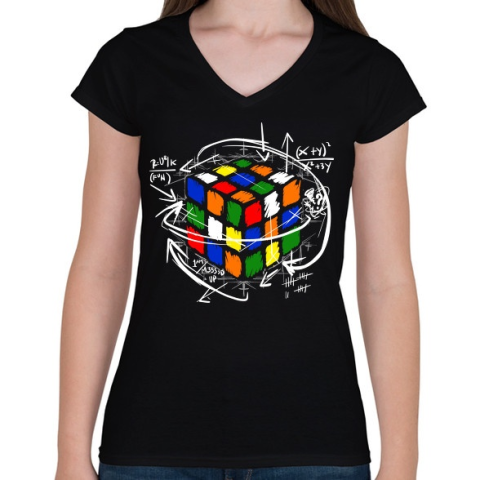 1 kép PRINTFASHION Rubik kocka - Női V-nyakú póló - Fekete