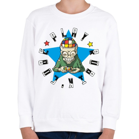 1 kép PRINTFASHION Rubik zombi - Play rubik's cube - Gyerek pulóver - Fehér
