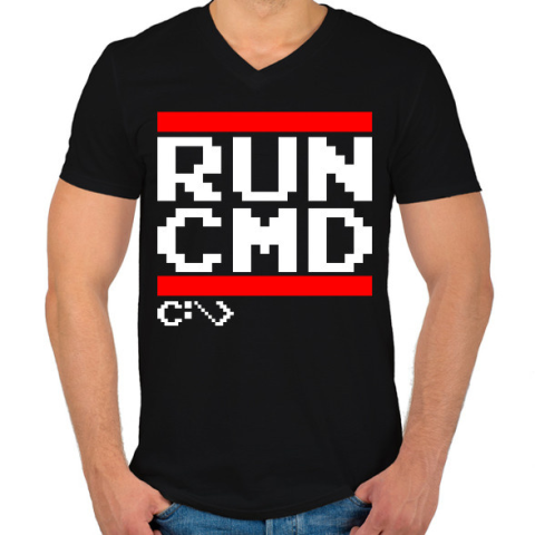 1 kép PRINTFASHION RUN CMD - Férfi V-nyakú póló - Fekete