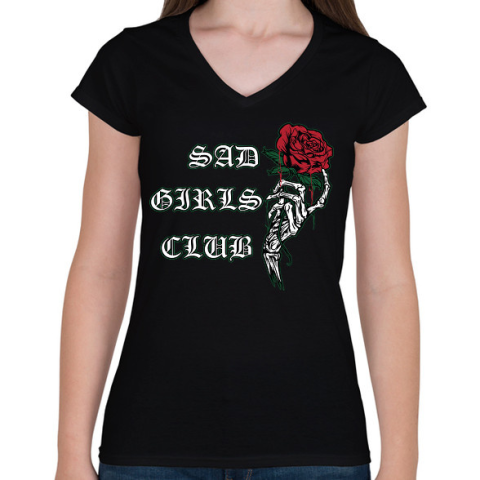 1 kép PRINTFASHION Sad Girls Club - Női V-nyakú póló - Fekete