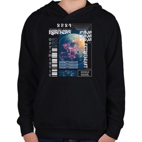 1 kép PRINTFASHION Sagittaurus - Streetwear style - Gyerek kapucnis pulóver - Fekete