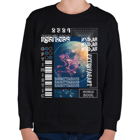 1 kép PRINTFASHION Sagittaurus - Streetwear style - Gyerek pulóver - Fekete