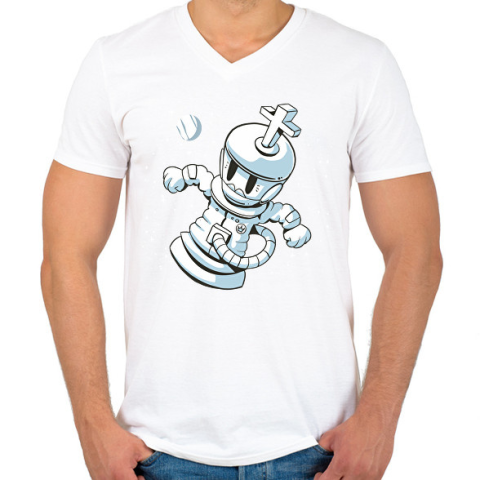 1 kép PRINTFASHION Sakk az űrben - Férfi V-nyakú póló - Fehér