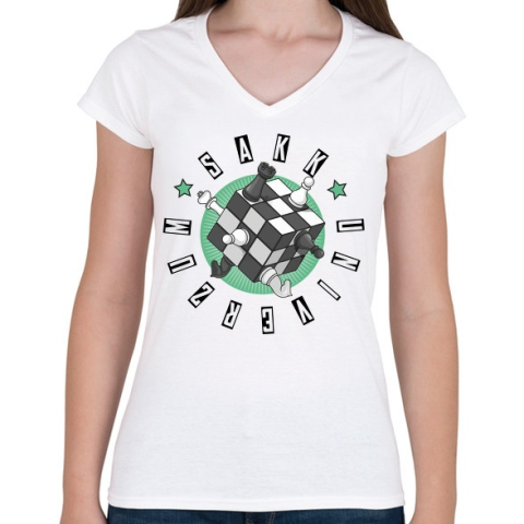 1 kép PRINTFASHION Sakk univerzum - Női V-nyakú póló - Fehér