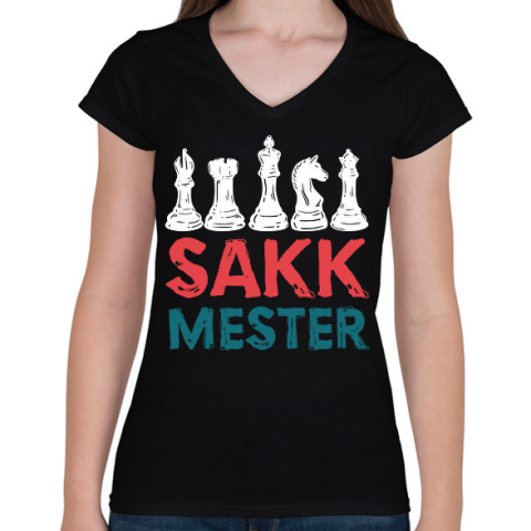 1 kép PRINTFASHION Sakkmester 2 - Női V-nyakú póló - Fekete