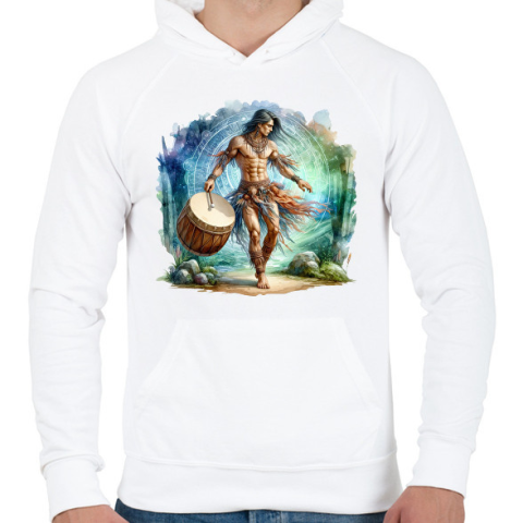 1 kép PRINTFASHION Sámán férfi - Férfi kapucnis pulóver - Fehér
