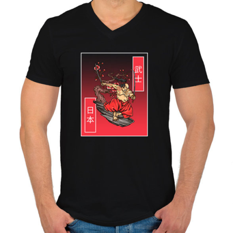 1 kép PRINTFASHION samurai - Férfi V-nyakú póló - Fekete