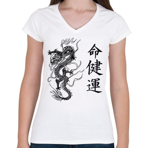 1 kép PRINTFASHION Sárkány 1 - Női V-nyakú póló - Fehér