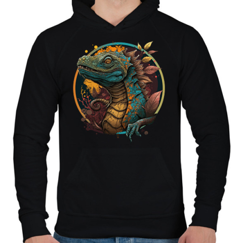 1 kép PRINTFASHION Sárkány design - Férfi kapucnis pulóver - Fekete