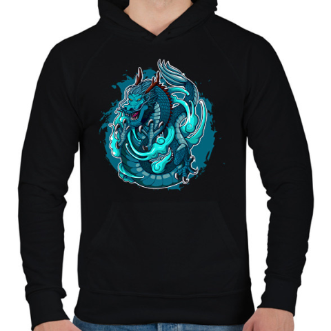 1 kép PRINTFASHION sárkány - Férfi kapucnis pulóver - Fekete